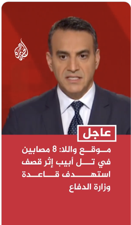 قناة الجزيرة @AJArabic موقع واللا: 8 مصابين في تل أبيب إثر قصف استهدف قاعدة وزارة الدفاع #عاجل https://x.com/AJArabic/status/2027857321758441927 |