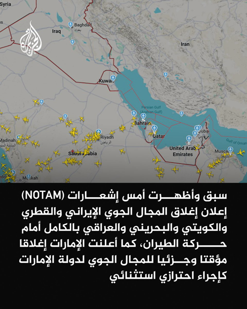 @AJArabic · 43m لأسباب أمنية.. سماء المنطقة خالية مع إلغاء 3400 رحلة جوية #الجزيرة_ألبوم