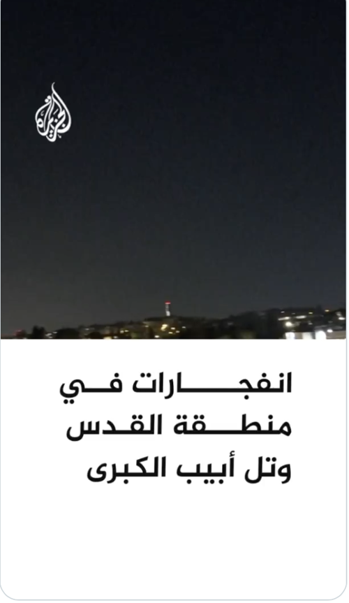 قناة الجزيرة @AJArabic القناة 12 الإسرائيلية: دوي انفجارات في منطقة القدس وشرق رام الله ومناطق تل أبيب الكبرى.. التفاصيل مع مراسل الجزيرة من رام الله محمد خيري #الأخبار https://x.com/AJArabic/status/2028191035625525330 |