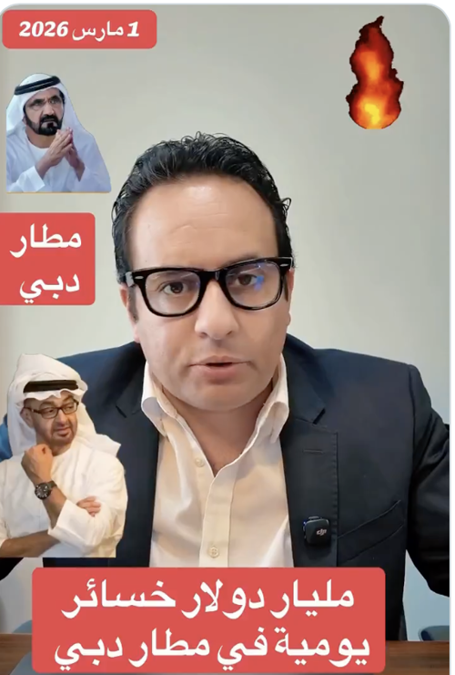 أنيس منصور @anesmansory مليار دولار في اليوم الواحد خسارة مطار دبي فقط #دبي_وأبوظبي_غير_آمنة #دبي_تشتعل https://x.com/anesmansory/status/2028398225343017458 |