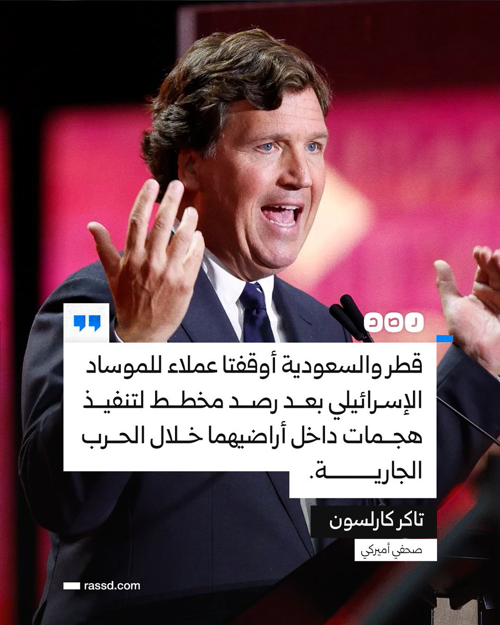 @RassdNewsN · 6m الصحفي الأميركي تاكر كارلسون يكشف أن قطر والسعودية أوقفتا عملاء للموساد الإسرائيلي بعد رصد مخطط لتنفيذ هجمات داخل أراضيهما خلال الحرب الجارية