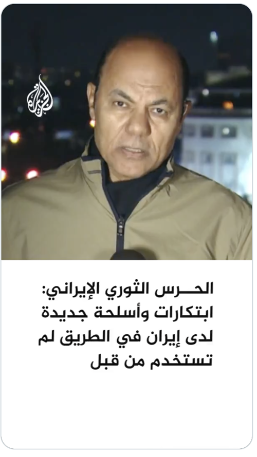 قناة الجزيرة @AJArabic #عاجل | المتحدث باسم الحرس الثوري الإيراني: ابتكارات وأسلحة جديدة لدى إيران في الطريق ولم يتم استخدامها من قبل https://x.com/AJArabic/status/2029711172308476368 |