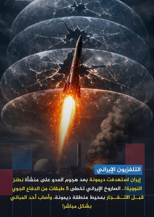 Privacy Policy أ@anesmansory Terms of Service & Privacy Policy #عاجل_وهـــــ ـالتلفزيون الإيراني: #إيران استهدفت ديمونة بعد هجوم العدو على منشأة نطنز النووية! 🔴 الصاروخ الإيراني تخطى 5 طبقات من الدفاع الجوي قبــل الانــفــجار بمحيط منطقة ديمونة، وأصاب أحد المباني بشكل مباشر 🔴 أعلنت الإذاعة الإسرائيلية: انهيار مبنى في منطقة ديمونة جنوب #إسرائيل إثر إصابته بصاروخ إيراني 🔴 في الإطار نفسه أعلنت وكالة تسنيم عن مصدر عسكري إيراني: رفعنا مؤخرا مستوى الاستهداف ونرد على كل خطأ للعدو بعمليات مفاجئة 🔴 إيران ترسل رسالة ردع نووي مباشرة بقدرتها على إستهداف ديمونة النووية في حالة أستهداف إسرائيل مواقعها النووية!