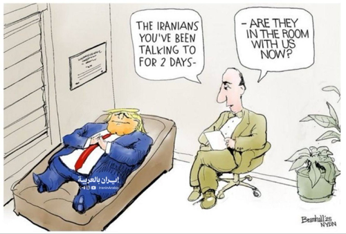 @iraninarabic_ir · 2h دع الكاريكاتير يتحدث حول ادعاءات ترامب الجديدة هل الإيراني الذي تتحدث معه منذ يومين، موجود الآن في الغرفة معنا؟