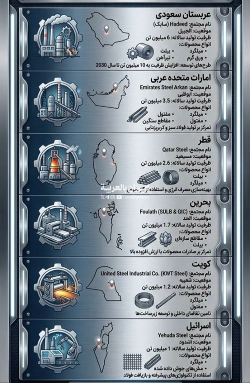 @iraninarabic_ir · 33m عاجل | تحذير إيراني باستهداف 6 مصانع فولاذ في "إسرائيل" و5 دول في المنطقة