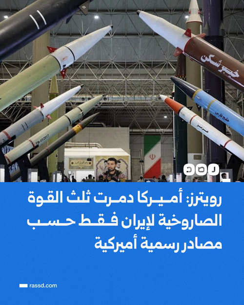 @RassdNewsN · 1h تغطية صحفية| رويترز نقلا مصادر رسمية أميركية: الحرب دمرت ثلث القوة الصاروخية لإيران فقط وهذا ما تم التأكد منه ومن غير الواضح مصير باقي الترسانة