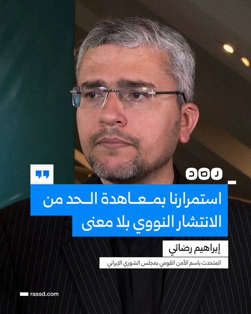 @RassdNewsN · 4h المتحدث باسم لجنة الامن القومي في البرلمان الإيراني يؤكد أن الاستمرار في معاهدة حظر الانتشار النووي غير مفيد لإيران