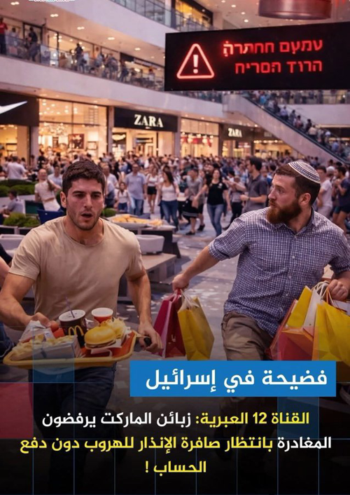 Privacy Policy أ@anesmansory Terms of Service & Privacy Policy · 17h تحولت ص ارات الإنذار من وسيلة للنجاة إلى وسيلة لـ "النصب" والسرقة العلنية في تل أبيب وهذا ما كشفته القناة 12 العبرية عن تصرفات صادمة تحدث في الشارع الإسرائيلي، 📌 رصد التقرير ظاهرة غريبة في المطاعم ومراكز التسوق، حيث يتعمد بعض الإسرائيليين البقاء في أماكنهم وعدم المغادرة رغم إنهاء وجباتهم أو تسوقهم، منتظرين بفا رغ الصبر انطلاق صافرات الإنذار ! 📌 بمجرد انطلاق الصافرة، وبدلاً من التوجه للملاجئ بنظام، يستغل هؤلاء حالة الذعر والهروب الجماعي ليختفوا تماماً من المكان دون دفع فواتير الطعام أو الحسابات، مستغلين انشغال أصحاب المحافظ والعمال بتأمين أنفسهم 📌 المحللون في القناة 12 وصفوا المشهد بالسقوط الأخلاقي، مؤكدين أن الحرب الطويلة لم تنهك الاقتصاد فقط، بل بدأت تكشف عن حالة من الأنانية والانتهازية التي تضرب المجتمع الإسرائيلي من الداخل 📌 أصحاب المطاعم والمحلات صرخوا من الخسائر المزدوجة؛ فمن جهة يتضررون من القصف، ومن جهة أخرى يتعرضون لسرقات ممنهجة من أبناء جلدتهم الذين وجدوا في الصواريخ الإيرانية واللبنانية فرصة لـ "أكل مجاني" وهروب قانوني !