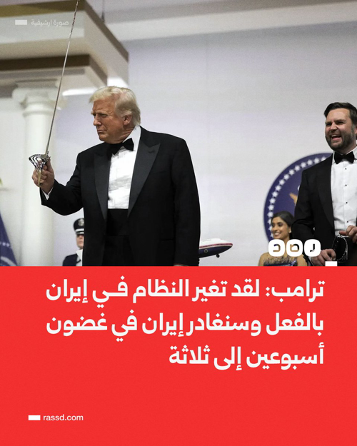 @RassdNewsN تغطية صحفية| ترامب: لقد تغير النظام في إيران بالفعل وسنغادر إيران في غضون أسبوعين إلى ثلاثة