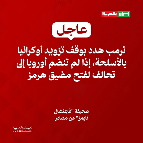 Privacy Policy إ@iraninarabic_ir Terms of Service & Privacy Policy · 1h صحيفة "فاينن شل تايمز" عن مصادر: ترمب هدد بوقف تزويد أوكرانيا بالأسلحة، إذا لم تنضم أوروبا إلى تحالف لفتح مضيق هرمز.