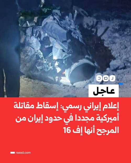 @RassdNewsN · 3h #عاجل: وكالة تسنيم الإيرانية الرسمية تنشر صوراً لمقاتلةٍ أميركيةٍ سقطت منذ قليل داخل حدود #إيران، وترجح من شكل محركها أنها من طراز إف 16