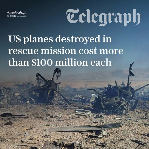 @iraninarabic_ir · 4h التلغراف: الطائرات الأمريكية التي دُمّرت في عملية إنقاذ طيار في إيران، بلغت قيمة كل منها أكثر من 100 مليون دولار.
