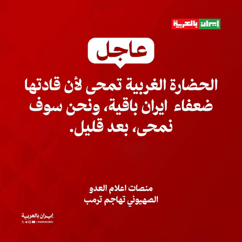 @iraninarabic_ir · 3h منصات اعلام العدو الصهيوني تهاجم ترمب : الحضارة الغربية تمحى لأن قادتها ضعفاء، ايران باقية، ونحن سوف نمحى، بعد قليل. ليذهب الأمريكيون إلى الجحيم ترامب الفاشل سيبيع كل شيء من أجل النفط