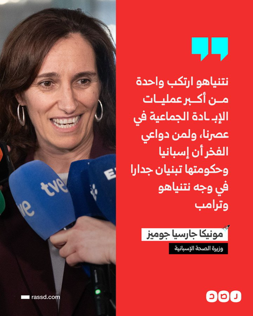 Privacy Policy ش@RassdNewsN Terms of Service & Privacy Policy · 4h وزيرة ا لحة الإسبانية «مونيكا جارسيا جوميز»: نتنياهو ارتكب واحدة من أكبر عمليات الإبـ ـادة الجماعية في عصرنا، حيث قتل 70 ألف مدني في فلسطين، أكثر من 20 ألف منهم أطفال، ودمر جنوب لبنان، ولمن دواعي الفخر أن إسبانيا وحكومتها تبنيان جدارا في وجه نتنياهو وترامب