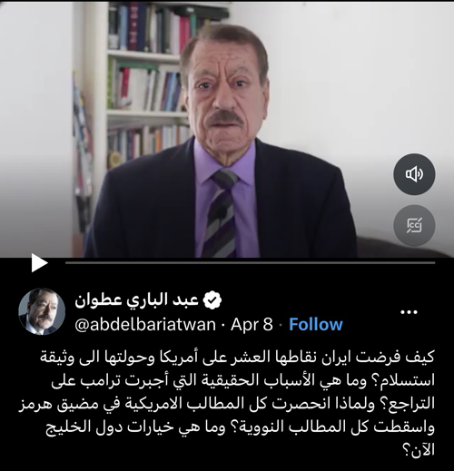 Privacy Policy إ@IranArabic_ir · 5h واشنطن بوست: أكثر ما تخافه دول الخليج هو النهاية غير المؤكدة لحرب إيران. دول الخليج قلقة من أن تنتهي الحرب دون تغيير حقيقي في القدرات النووية والصاروخية والنفوذ الإق ليمي لإيران.