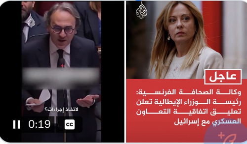@jacksonhinklle · 15m 🇮🇹 🇮🇱 Italian Prime Minister Meloni announces suspension of military cooperation & defense agreement with Israel. Image
