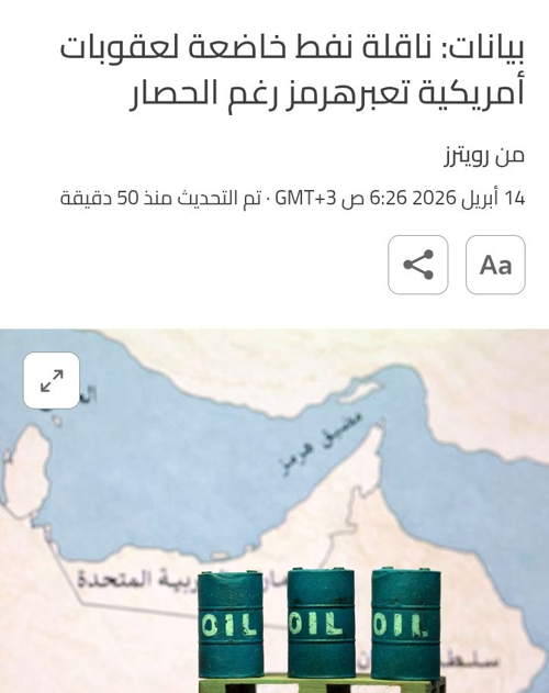 @rmky6607 · 10h هام /يبدو ان الولايات المتحدة الأمريكية تتجنب الصدام المباشر مع الصين اعلام أمريكي ناقلة نفط مملوكة لشركة صينية عبرت مضيق هرمز اليوم رغم الحصار الأمريكي