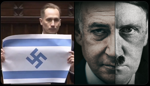@jacksonhinklle · 5h 🇵🇱 🇮🇱 Poland MP Konrad Berkowicz openly called Israel “the new Third Reich” with an Israeli flag and swastika.