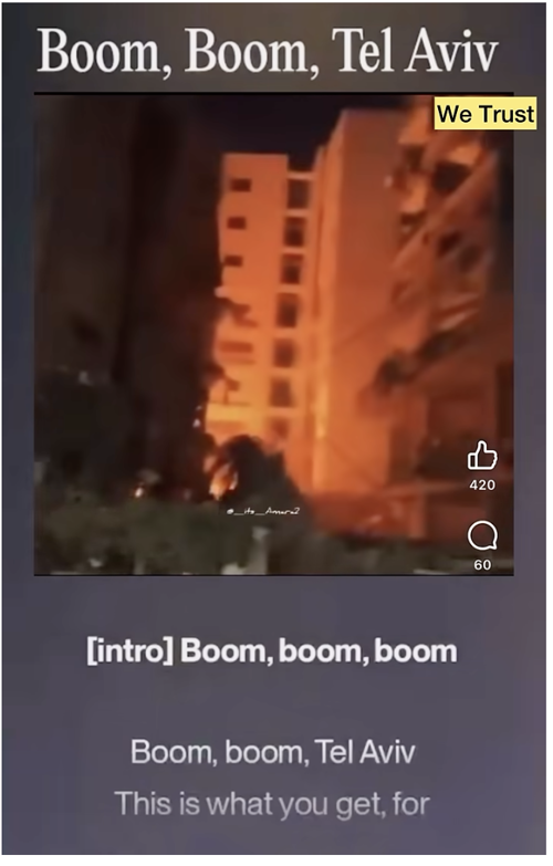 «بوم بوم تل أبيب» أغنية باللغة الإنجليزية تتشفى في قصف إسرائيل |