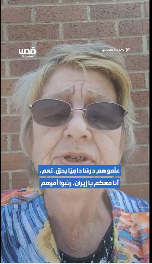 شبكة قدس الإخبارية @qudsn مسنة إنجليزية توجه رسالة لإيران:" دمّروها كما دَمّرت هي غزة، أنتم تعرفون عن من أتحدث، أنجزوا المهمة" |
