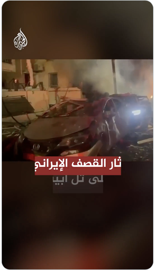 مشاهد توثق اللحظات الأولى عقب القصف الإيراني على مدينة تل أبيب، مساء السبت. فيما قالت هيئة البث الإسرائيلية إن 7 أشخاص أُصيبوا بجروح أحدهم حالته خطرة جراء سقوط صواريخ إيرانية بتل أبيب.