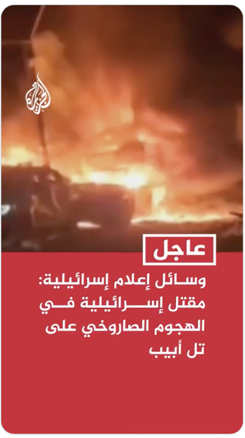 قناة الجزيرة @AJArabic وسائل إعلام إسرائيلية: مقتل إسرائيلية في الهجوم الصاروخي على تل أبيب #عاجل https://x.com/AJArabic/status/2027864156750111181 |