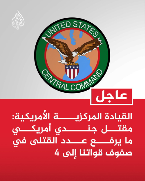 قناة الجزيرة @AJArabic · 27m وزير الحرب الأمريكي: أسلحة إيرانية أصابت مركز عمليات تكتيكية ما تسبب في سقوط قتلى أمريكيين |