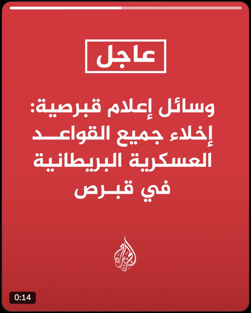 قناة الجزيرة @AJArabic #عاجل| وسائل إعلام قبرصية: إخلاء جميع القواعد العسكرية البريطانية في قبرص https://x.com/AJArabic/status/2028443827959390693 |