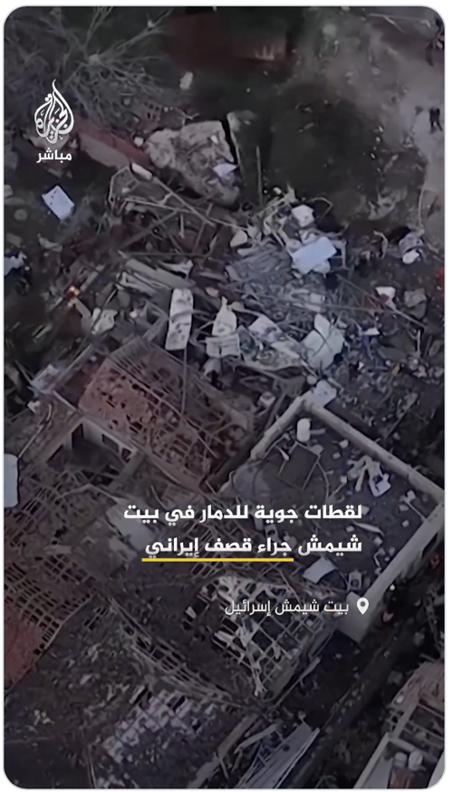 @ajmubasher لقطات جوية تُظهر حجم الدمار في مستوطنة بيت شيمش ومحاولات البحث عن مفقودين، جراء قصفٍ أسفر عن مقتل 9 إسرائيليين وإصابة العشرات https://x.com/ajmubasher/status/2028203105771249677 |