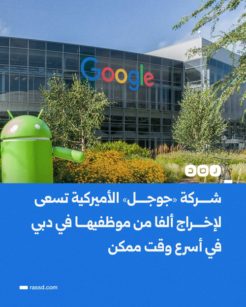 @RassdNewsN · 2h شركة «جوجل» الأميركية تسعى لإخراج ألفا من موظفيها في دبي في أسرع وقت ممكن، وفقا لصحيفة «وول ستريت جورنال»