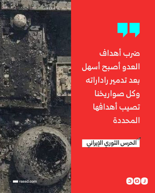 Privacy Policy ش@RassdNewsN Terms of Service & Privacy Policy · 1h تغطية ص حية | الحرس الثوري الإيراني: هاجمنا الأراضي المحتلة باستخدام مسيرات و صواريخ من الجيل الجديد متعدد الرؤوس الحربية، وضرب أهداف العدو أصبح أسهل بعد تدمير راداراته وكل صواريخنا تصيب أهدافها المحددة