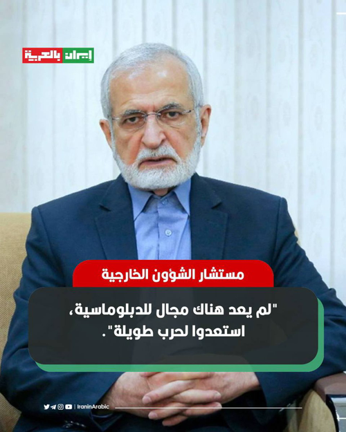 @IranArabic_ir · 39m كمال خرازي مستشار الشؤون الخارجية في مقابلة مع مراسل شبكة CNN في طهران: "لم يعد هناك مجال للدبلوماسية، استعدوا لحرب طويلة".