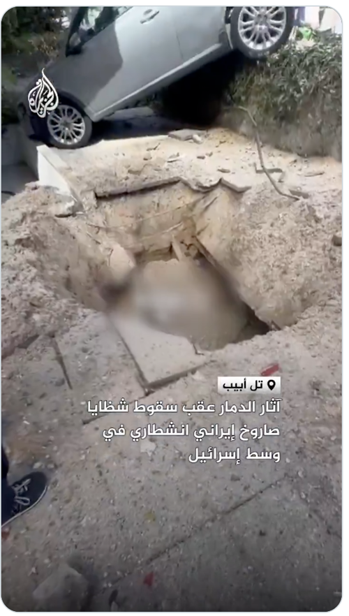 @AJArabic مشاهد توثق آثار الدمار عقب سقوط شظايا صاروخ إيراني انشطاري وسط إسرائيل ما أسفر عن عدد من الإصابات، وفق ما أفادت به وسائل إعلام إسرائيلية. #فيديو https://x.com/AJArabic/status/2030631131435905496 |
