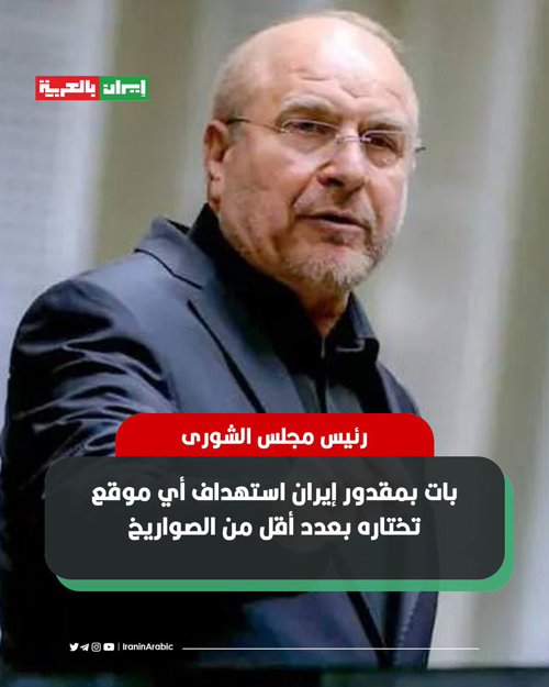 @iraninarabic_ir · 1h رئيس مجلس الشورى محمد باقر قاليباف: بات بمقدور إيران استهداف أي موقع تختاره بعدد أقل من الصواريخ