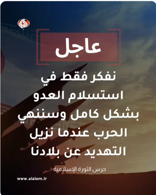 قناة العالم @v_alalamnews حرس الثورة الإسلامية:نفكر فقط في الاستسلام الكامل للعدو،ولن تنتهي الحرب إلا عندما يُرفع شبحها عن البلاد.استهدفنا ما تبقى من القوات العسكرية الأمريكية في المنطقة ضمن الموجة 38 من عملية الوعد الصادق 4 ودحر عدد كبير من الجنود الأمريكيين ونقل أكثر من100جريح بعد استهداف قاعدة العديري https://x.com/v_alalamnews/status/2031704832029884548 |
