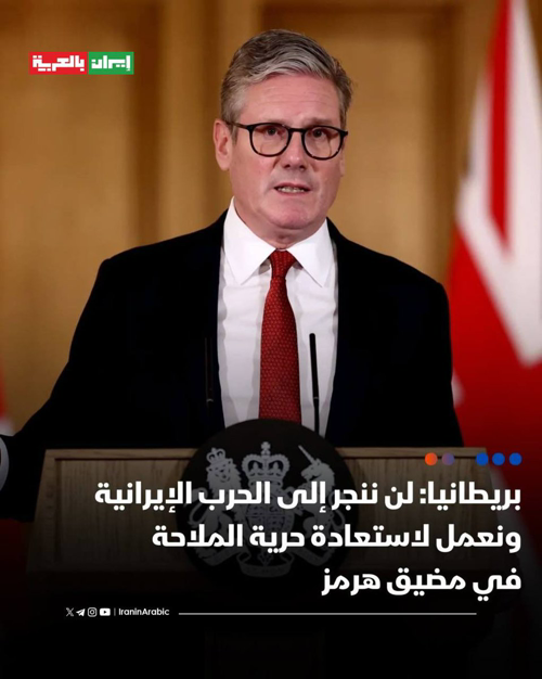 @iraninarabic_ir · 7h 🔹رئيس الوزراء البريطاني كير ستارمر: -لن ننجر إلى الحرب الإيرانية الأوسع نطاقاً وسنواصل العمل من أجل التوصل إلى حل سريع -عندما يتوقف القتال سنحتاج إلى نوع من الاتفاق عبر التفاوض مع إيران -فتح مضيق هرمز ليس بالمهمة السهلة ونعمل مع الحلفاء لاستعادة حرية الملاحة في المنطقة
