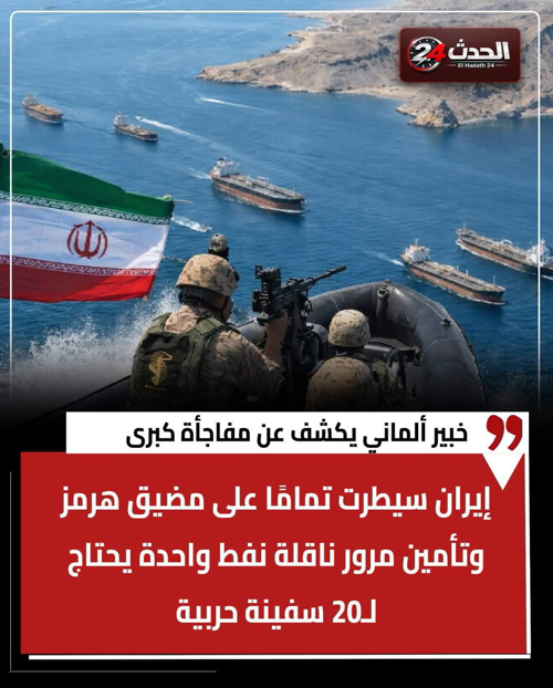 @anesmansory في تطور خطير يؤكد سيطرة إيران تماما علي مضيق هرمز وارتفاع جنوني محتمل لأسعار البترول كشف خبير جيوسياسي ألماني عن معلومات صادمة بخصوص الوضع الحالي في مضيق هرمز، واحد من أهم الممرات البحرية في العالم واللي بيمر من خلاله حوالي خُمس النفط العالمي. الكلام ده مش مجرد تحليل سياسي… ده تحذير واضح من أزمة طاقة عالمية ممكن تستمر لفترة طويلة. السيطرة الإيرانية على المضيق الخبير الألماني كليمنس فيشر قال في تصريحات لوكالة الأنباء الألمانية إن إيران استعدت فعليًا لسيطرة طويلة المدى على مضيق هرمز، وإنها جهزت عدة وسائل عسكرية تخلّي السيطرة على الممر البحري شبه كاملة. وبحسب كلامه، إيران بتعتمد على مجموعة من الأساليب العسكرية في نفس الوقت، منها: نشر ألغام بحرية في الممرات الحساسة استخدام الصواريخ بعيدة المدى إطلاق طائرات مسيّرة هجومية انتشار زوارق سريعة مسلحة قادرة على ضرب السفن الاستراتيجية دي بتخلي المرور في المضيق شديد الخطورة، وبتعطي إيران القدرة على تعطيل الملاحة أو التحكم فيها بشكل كبير. الرقم الصادم: 50 سفينة حربية لعبور 3 ناقلات فقط المفاجأة الأكبر كانت في الرقم اللي كشفه الخبير الألماني بخصوص تأمين مرور ناقلات النفط. بحسب تقديره، تأمين عبور 3 ناقلات نفط فقط في الأسبوع عبر مضيق هرمز يحتاج إلى حوالي 50 سفينة حربية مرافقة. يعني ببساطة: مرور ناقلة نفط واحدة تقريبًا يحتاج حوالي 20 سفينة حربية لحمايتها. وده رقم ضخم بيكشف قد إيه الوضع العسكري في المضيق معقد وخطير. توقف شبه كامل للملاحة الحرب الأمريكية الإسرائيلية على إيران أدت إلى تعطّل شبه كامل لحركة الملاحة في مضيق هرمز، وهو الممر البحري اللي عرضه حوالي 55 كيلومتر فقط بين إيران وسلطنة عمان. المضيق ده بيمر من خلاله يوميًا نسبة ضخمة من صادرات النفط والغاز الطبيعي المسال في العالم، وأي تعطيل فيه بيأثر فورًا على الاقتصاد العالمي. تحذير من ارتفاع أسعار الوقود عالميًا الخبير الألماني أكد إن الأزمة دي هتأثر بشكل مباشر على أسعار الطاقة، وقال إن أسعار الوقود في أوروبا، خصوصًا ألمانيا، مش هتنخفض قريب، بل من المتوقع إنها تستمر في الارتفاع لفترة طويلة. حتى لو بعض الدول قررت تضخ احتياطيات نفط إضافية في السوق، فإن وصول الإمدادات الجديدة ممكن يستغرق أيام أو حتى أسابيع.