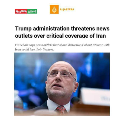 @iraninarabic_ir · 8h 🔺الجزيرة: إدارة ترامب تهدد وسائل الإعلام بإلغاء تراخيصها إذا قامت بعرض وجهات نظر معارضة للحرب ضد إيران.