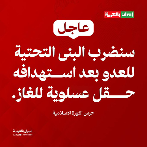 Privacy Policy إ@iraninarabic_ir Terms of Service & Privacy Policy · 19m حرس الثورة ااسلامية: سنضرب البنى التحتية للعدو بعد استهدافه حقل عسلوية للغاز.