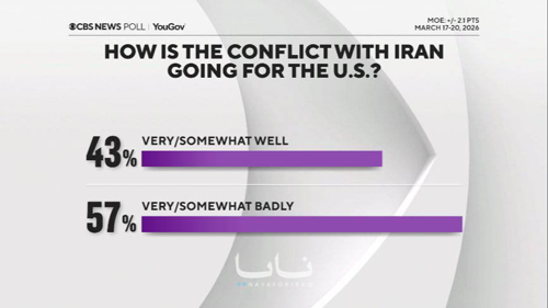 @jacksonhinklle · 3h 🚨🇺🇸🇮🇷 BREAKING: 57% of Americans say the IRAN WAR is going “very or somewhat badly” for the U.S.