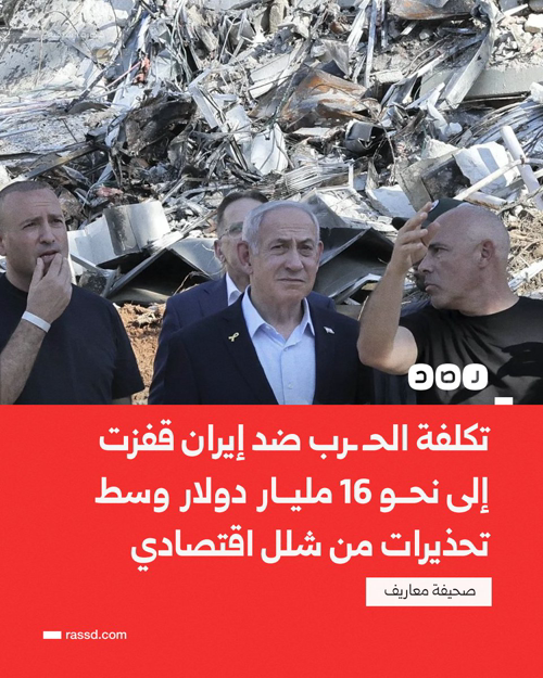 @RassdNewsN · 3h صحيفة معاريف العبرية: تكلفة الحرب ضد إيران قفزت إلى نحو 16 مليار دولار، تشمل خسائر ناتجة عن فقدان الإنتاج وتضخم ميزانية الدفاع، وسط تحذيرات من شلل اقتصادي جراء استدعاء 450 ألف جندي احتياط