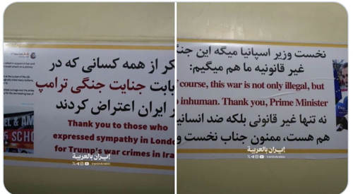 إيران بالعربية | عاجل @IranArabic_ir Terms of Service & Privacy Policy بالصور | خلال الرشقة الصاروخية القادم ة ولرئيس الوزراء الإسباني الذي أكد عدم شرعية الحرب... During the upcoming rocket barrage that will strike the Zionist entity, the missiles are inscribed with: Messages of thanks to the protesters in London against the war, and to the Spanish Prime Minister who affirmed the illegitimacy of the war...