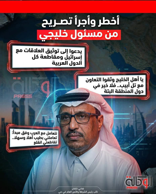 @anesmansory اخطر وأجرأ تصريح من مسئول خليجي - يدعوا الي توثيق العلاقات مع اسرائيل ومقاطعة كل الدول العربية - يا أهل الخليح وثقوا التعاون مع تل ابيب .. فلا خير في دول المنطقة البته - نتعامل مع العرب وفق مبدأ تعاملني بطيب اهلا وسهلا .. تقاطعني انقلع !! قال الفريق ضاحي خلفان نائب رئيس الشرطة والامن العام في دبي : ان ما تقوم به امريكا واسرائيل هو في الواقع قضاء على آلات دمار صنعت للهيمنة الفارسية على المنطقة. وعيب على دول الخليج ان تبقى في جامعة تطلق على نفسها جامعة عربية وهي غير عربية المشاعر وتتعاطف مع الفرس.!! وتابع ضاحي خلفان في سلسلة تغريدات له علي حسابه بموقع التواصل الاجتماعي " اكس .. تويتر سابقا " قائلاً : يا أهل الخليح العربي وثقوا التعاون مع اسرائيل نصيحة فلا خير في دول المنطقة البته. وتابع : علينا ان نتعامل مع بقية الدول العربية معاملة السلام عليكم وعليكم السلام تعاملني بطيب اهلا وسهلا تقاطعني انقلع. واضاف الفريق خلفان في تغريداته : لابد من توقيع خليجي جماعي مع اسرائيل والدول الصديقة الغربية ذات التأثير الفعال. مشددا علي أنه إذا ظل الملالي في الحكم بعد انتهاء الحرب فعلى دول الخليج مقاطعتها سياسيا واقتصاديا وحرمانها من الاستفادة من اسواق الخليج والتعامل مع الهند واسواقها فالذي ادرج الحرس الثوري على قوائم الإرهاب كان محقا لان هؤلاء ينبغي ان يكونوا مدرجين في جميع دول العالم. هل تعتقد أن الدعوات لتعزيز العلاقات مع إسرائيل تمثل خيارًا استراتيجيًا يخدم استقرار المنطقة، أم أنها قد تزيد من حدة الانقسام العربي؟ من الذي أوعز لخلفان ان يغرد !؟