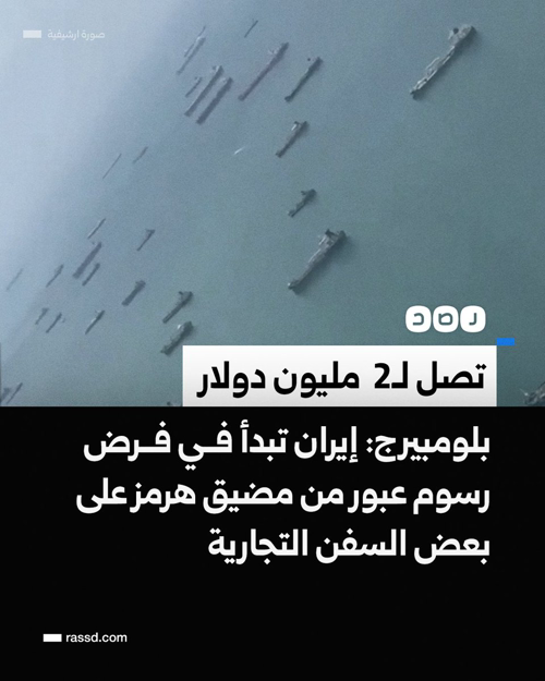 @RassdNewsN · 3h تصل لـ2 مليون دولار بلومبيرج: إيران تبدأ في فرض رسوم عبور من مضيق هرمز على بعض السفن التجارية مقابل المرور الآمن، وأن بعض السفن قامت بالدفع فعلا حسب مصادر لحمايتها من أي هجوم